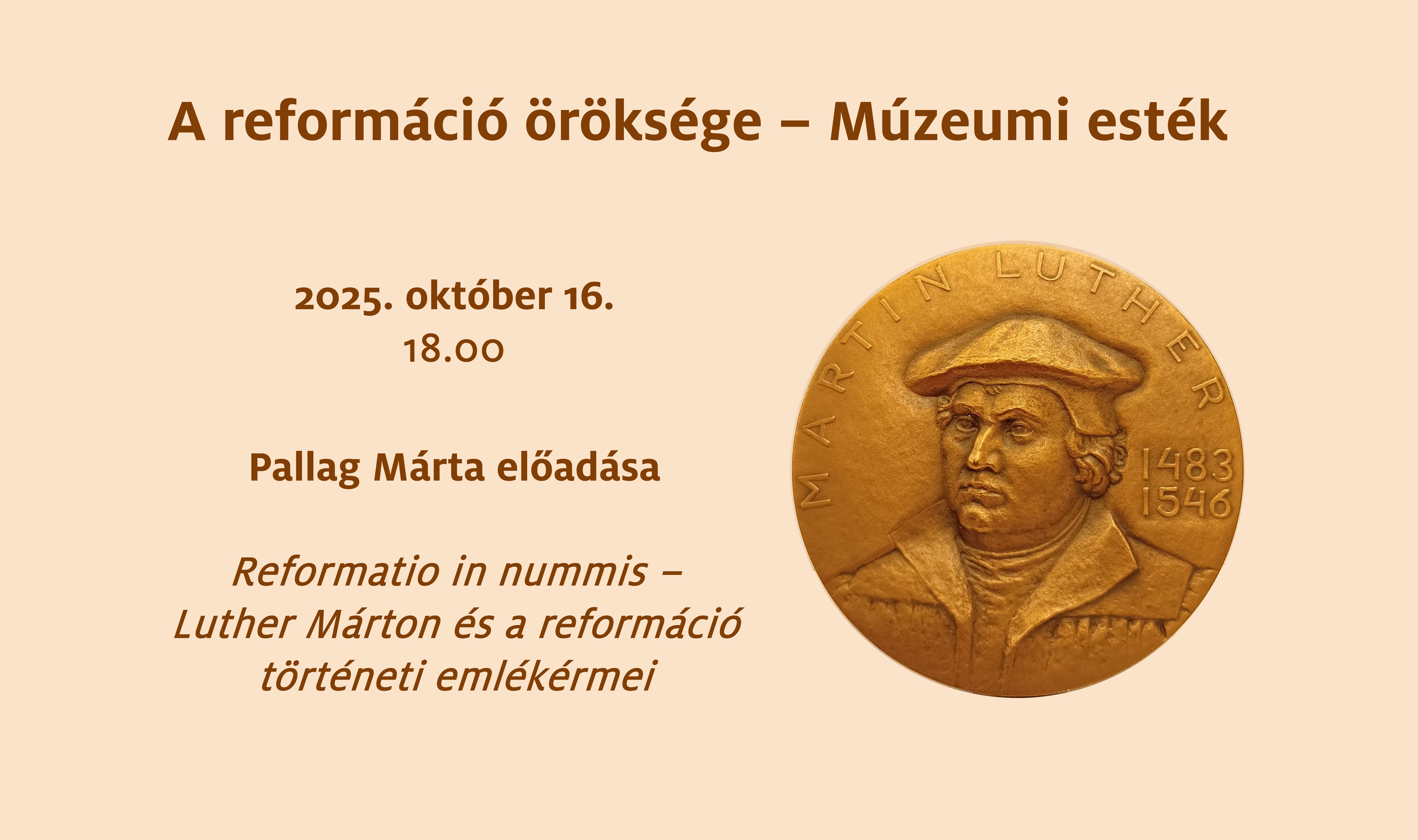 Időpont 2025. 10. 16. 18:00 Helyszín Evangélikus múzeum, Budapest V. ker. Deák F. tér 4. Pallag Márta művészettörténész (MNMKK Éremtár) előadása.